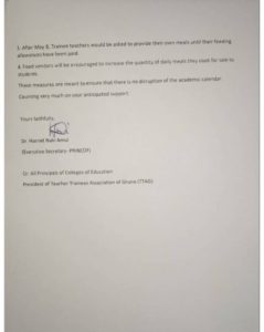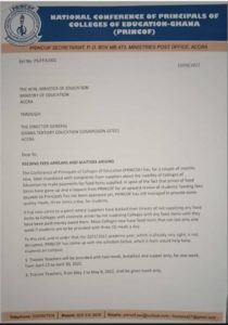It appears after the National Conference of Principals of Colleges of Education – Ghana (PRINCOF) published a new directive in reaction to the government’s downfall to compensate six-month feeding payment arrears.