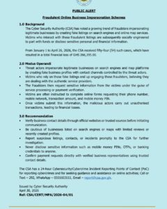 The Cyber Security Authority (CSA) has issued a public alert warning of a growing trend of fraudsters impersonating legitimate businesses online, leading to significant financial losses for unsuspecting victims.