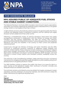The National Petroleum Authority (NPA) has moved to calm public concerns over fuel availability and pricing, assuring Ghanaians that the country has adequate stocks of petroleum products and that the national fuel supply situation remains stable.