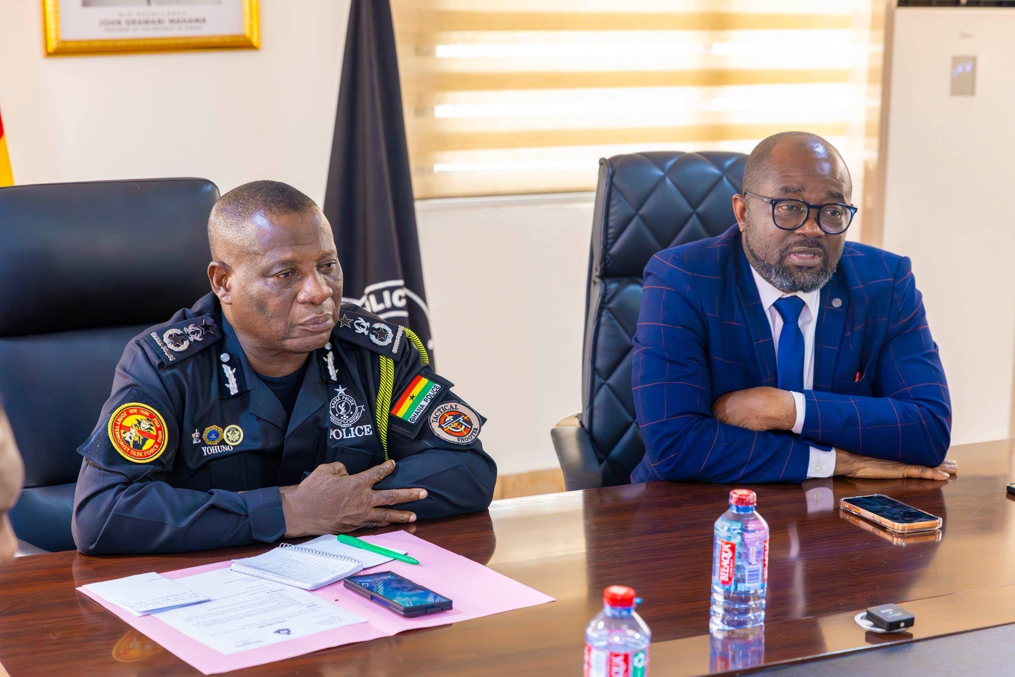 The Inspector General of Police (IGP), Mr. Christian Tetteh Yohuno, together with members of the Police Management Board (POMAB), yesterday hosted the President of the Ghana Football Association (GFA), Mr. Kurt Okraku Mantey, and his team at the National Police Headquarters in Accra.