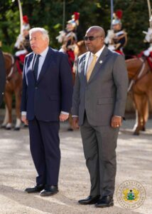 President John Dramani Mahama today began a one-day official visit to France with a meeting with Gérard Larcher, President of the French Senate. He was received with a military ceremony before the bilateral discussions, which focused on trade and investment, regional security, counter-terrorism, and France’s support for maternal health and agriculture in Ghana.