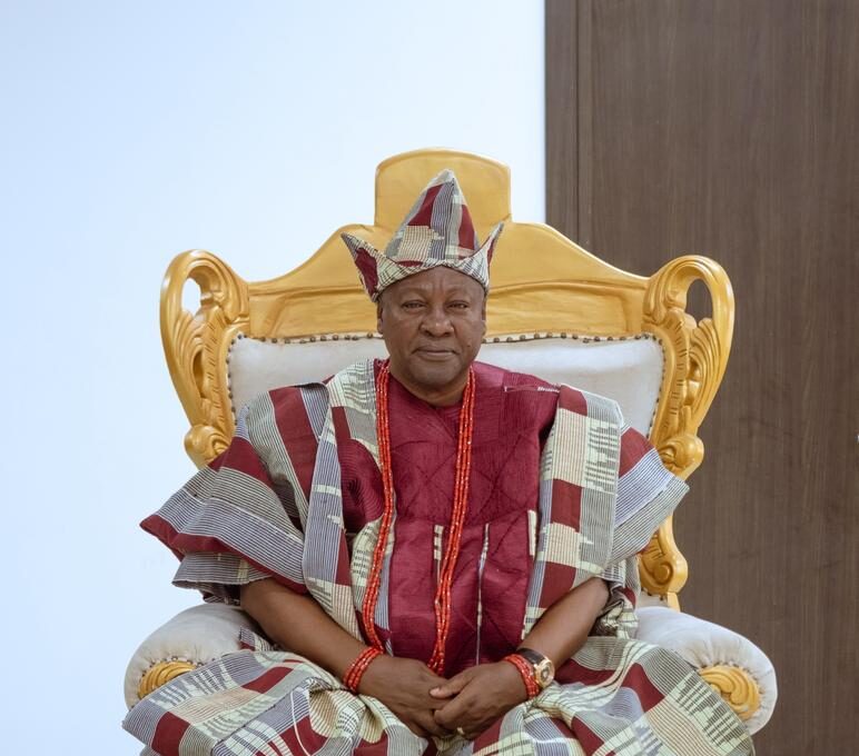 President John Dramani Mahama has been installed as Aare Atayeto Oodua of the Source by the Ooni of Ife, His Imperial Majesty Oba Adeyeye Enitan Babatunde Ogunwusi, Ojaja II, in a colourful ceremony at the royal palace in Ile-Ife, Nigeria.