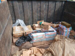 A thorough search of the truck uncovered one Adler pump-action gun, 7,000 AAA cartridges, 3,000 BB cartridges, and 1,124 live rounds of AK-47 ammunition concealed in plastic sacks and boxes under tarpaulins.